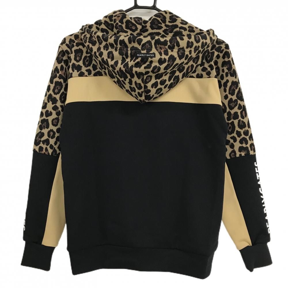 パーリーゲイツ ジップパーカー ベージュ系×黒 上部レオパード 袖ロゴプリント レディース 0 S ゴルフウェア PEARLY GATES