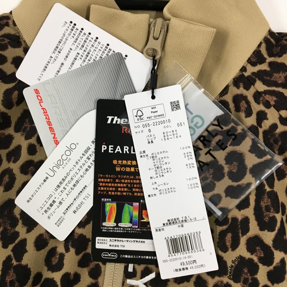 パーリーゲイツ ジャケットブルゾン ベージュ×ダークブラウン レオパード柄 ロゴ白 レディース 0 S ゴルフウェア PEARLY GATES