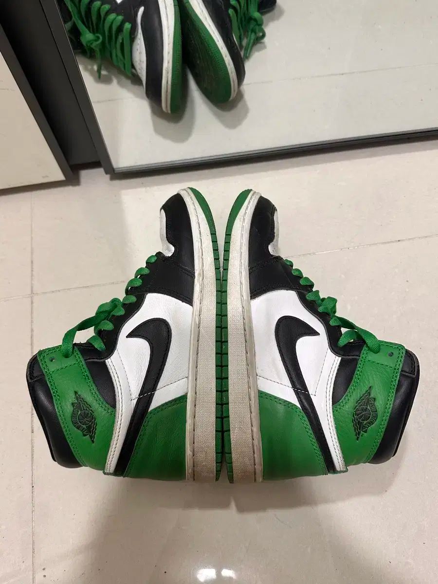 これはブラックとラッキーグリーンのJORDAN (ジョーダン) 1レトロハイOGモデルです。着用配送数が少ないため、良好な状態です。