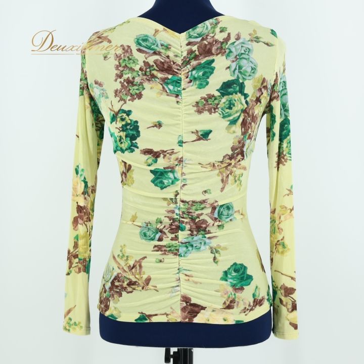 社交ダンス 衣装 チャコットロイヤルダンス Chacott ROYAL DANCE トップス イエロー系 花柄 ストレッチ 伸縮 明るい 華やか 上品 黄 茶 緑 長袖 ブラウス かわいい ブラウン系 グリーン系